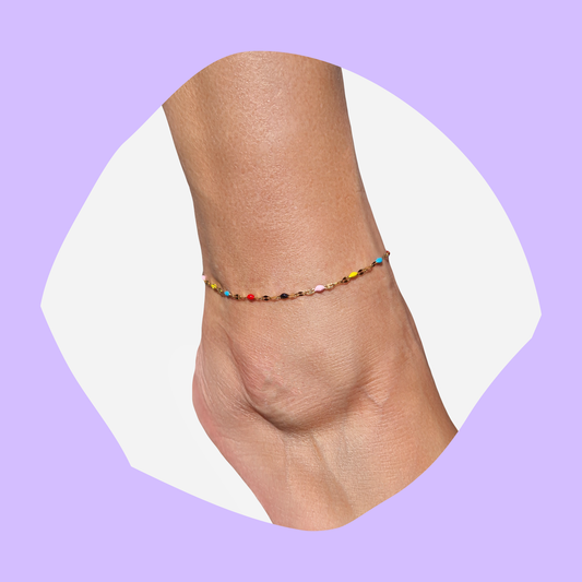 Βραχιόλι Ποδιού από Ατσάλινη Χρυσή Αλυσίδα με Πολύχρωμα Μοτίβα