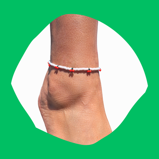 Παιδικό Χειροποίητο Βραχιόλι Ποδιού Λευκό με Κερασάκια από Χάντρες