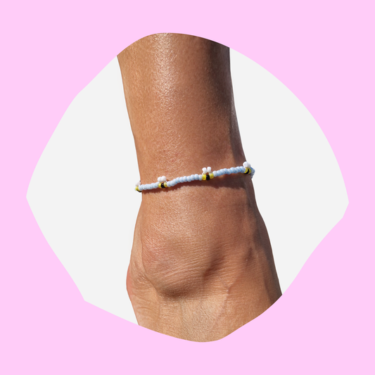 Ενήλικο ή Παιδικό Χειροποίητο Βραχιόλι Ποδιού Λευκό με Μελισσούλες από Χάντρες MIYUKI