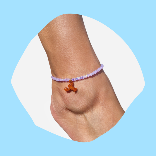Βραχιόλι Ποδιού από Λιλά Κρυσταλλάκια και Κρεμαστό Πλέξι Αστακό