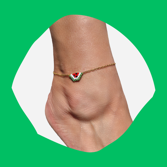 Βραχιόλι Ποδιού από Ατσάλινη Χρυσή Αλυσίδα με Χειροποίητο Καρπούζι από Χάντρες