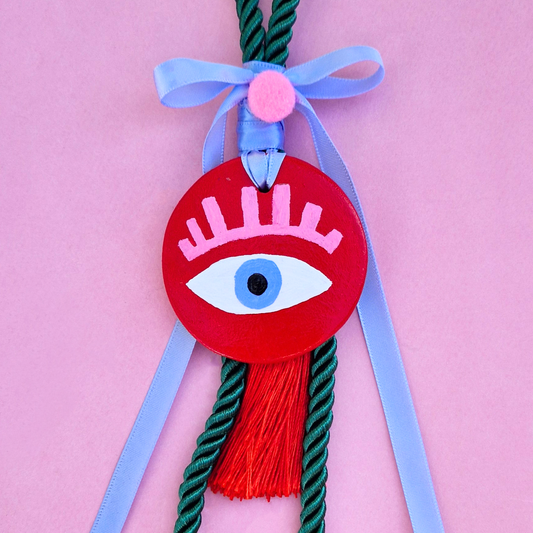 Κρεμαστό Χειροποίητο Κεραμικό Χριστουγεννιάτικο Γούρι 2026 Κόκκινο με Μάτι
