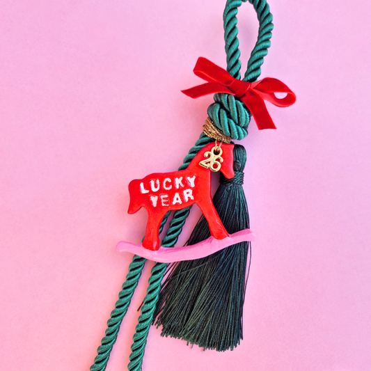 Κρεμαστό Χειροποίητο Κεραμικό Χριστουγεννιάτικο Γούρι 2026 Κόκκινο Αλογάκι Lucky Year