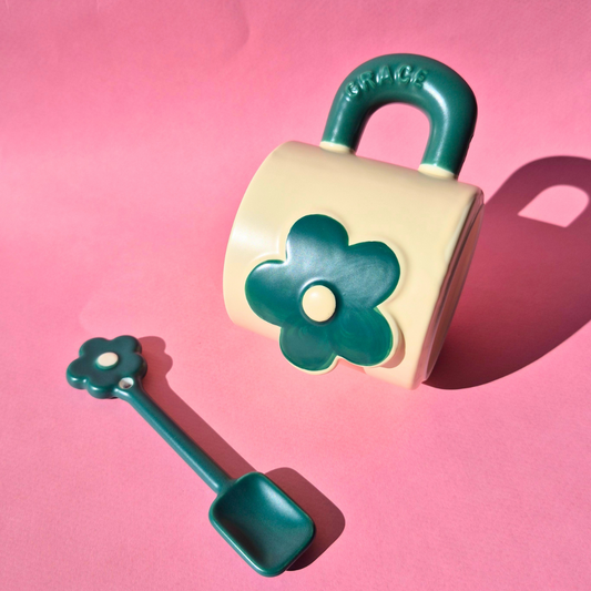Κεραμική Κούπα με Σκούρο Πράσινο Λουλούδι και Κουταλάκι