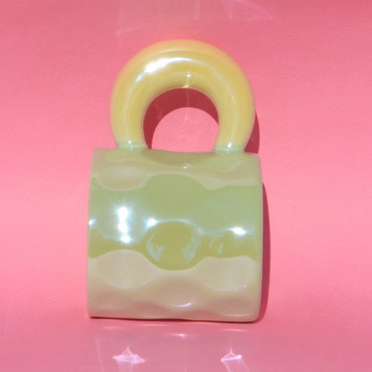 Κεραμική Λαχανί Κούπα Μεταλιζέ με Χοντρή Κίτρινη Λαβή