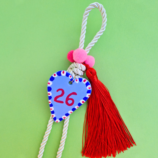 Κρεμαστό Χειροποίητο Κεραμικό Χριστουγεννιάτικο Γούρι 2026 Ροζ με Κόκκινη Καρδιά