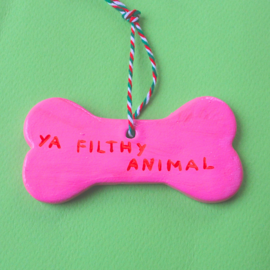 Χειροποίητο Χριστουγεννιάτικο Κεραμικό Στολίδι Ροζ Κόκκαλο Merry Christmas Ya Filthy Animal