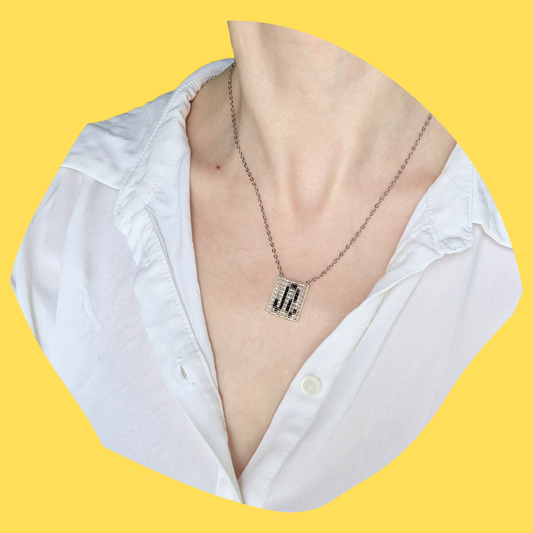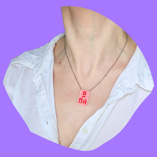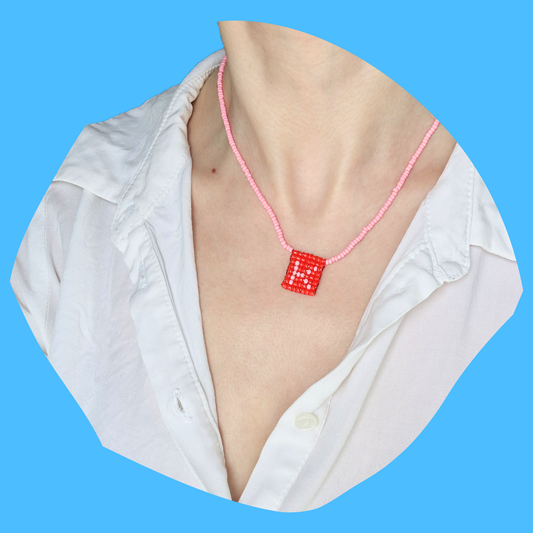 Custom Χειροποίητο Κολιέ Μονόγραμμα σε Κόκκινο Τετράγωνο Πλαίσιο από Χάντρες