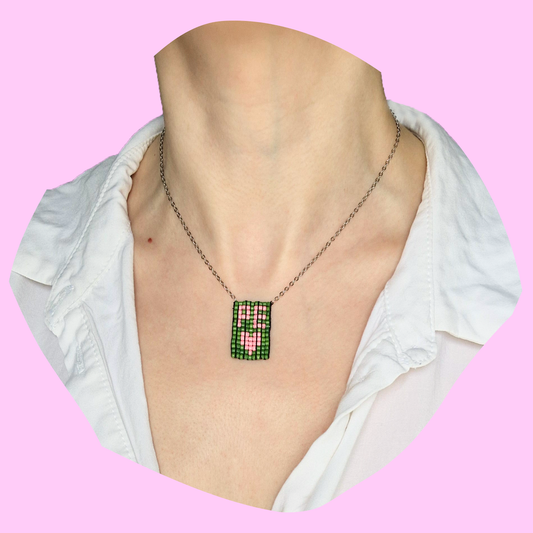 Custom Χειροποίητο Κολιέ Μονόγραμμα σε Κόκκινο Τετράγωνο Πλαίσιο από Χάντρες MIYUKI