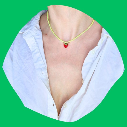 Χειροποίητο Κολιέ από Κίτρινες Περλέ Χάντρες και Πλέξι Φράουλα