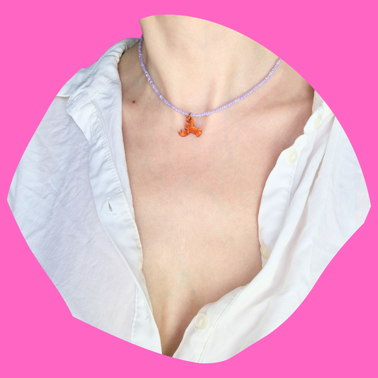 Χειροποίητο Κολιέ από Λιλά Περλέ Χάντρες και Πλέξι Αστακό