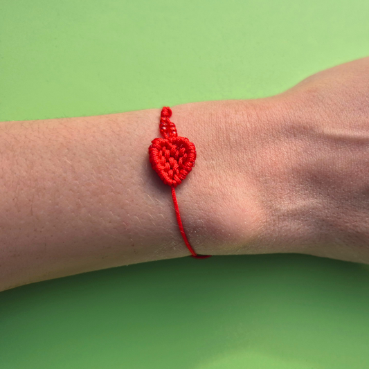Μαρτάκι Χειροποίητο Μακραμέ Μικρή Κόκκινη Καρδιά Μικρή με Xαντράκια για Ενήλικες και Παιδιά