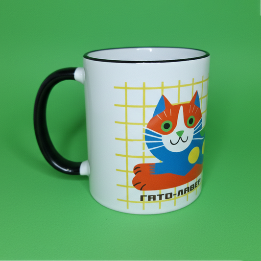 Πορσελάνινη Κούπα Γάτο-Λάβερ Κίτρινη με Μαύρο Χρωματιστό Χείλος και Χερούλι