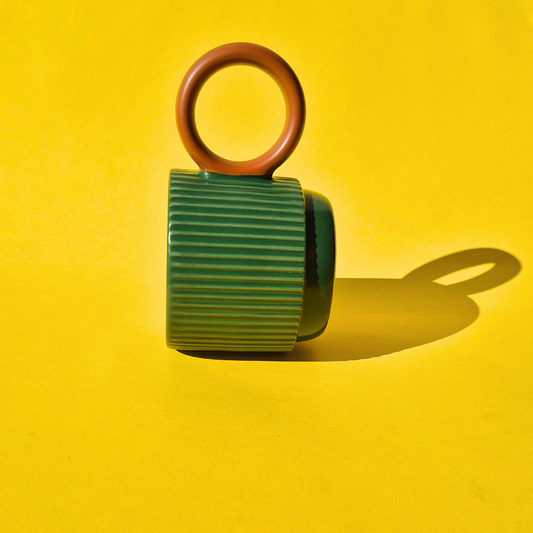 Πορσελάνινη Πράσινη Γκοφρέ Κούπα με Στρογγυλή Καφέ Λαβή