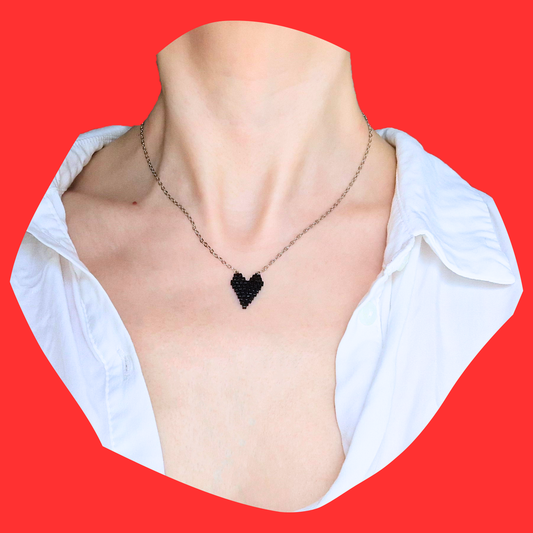 Χειροποίητο Κολιέ με Μικρή Μαύρη Καρδιά από Χάντρες Miyuki σε Ατσάλινη Ασημένια Αλυσίδα