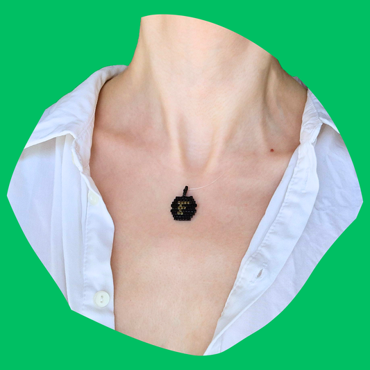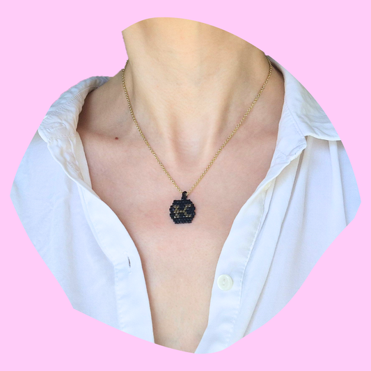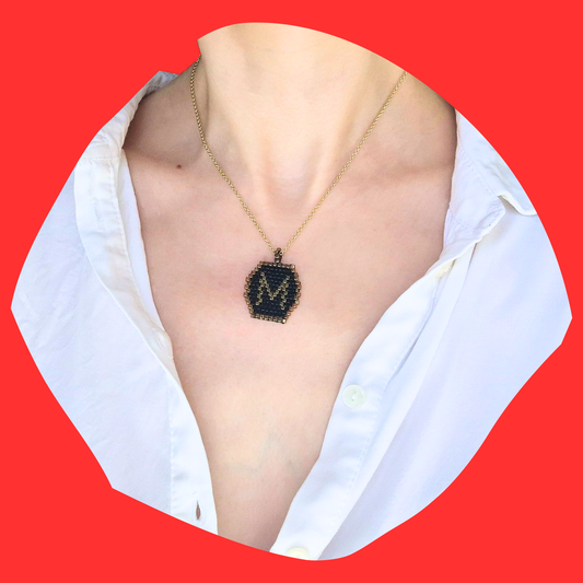 Χειροποίητο Κολιέ Χρυσό Μονόγραμμα σε Μαύρο Φόντο από Χάντρες Miyuki σε Πετονιά