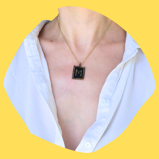Χειροποίητο Κολιέ Χρυσό Μονόγραμμα σε Μαύρο Φόντο από Χάντρες Miyuki σε Ατσάλινη Χρυσή Αλυσίδα