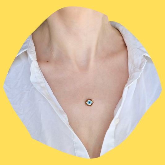 Χειροποίητο Κολιέ με Μικρό Μάτι από Χάντρες Miyuki σε Πετονιά