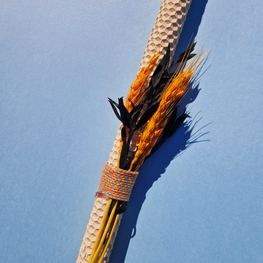 Πασχαλινή Λαμπάδα Χειροποίητη από Μελισσοκέρι Μπεζ με Αποξηραμένο Στάχυ και Πράσινα Φύλλα