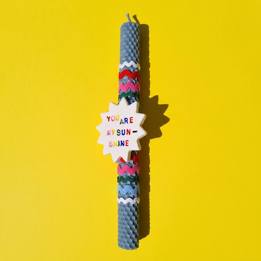 Πασχαλινή Λαμπάδα Χειροποίητη από Μελισσοκέρι Μπεζ με Κεραμικό Στοιχείο Λευκός Ήλιος You Are My Sunshine