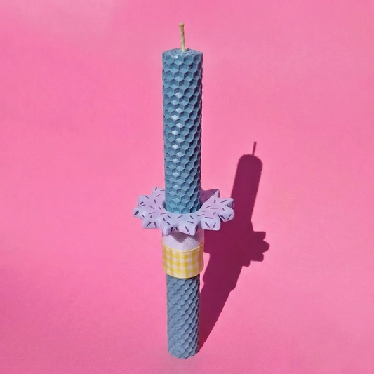 Πασχαλινή Λαμπάδα Χειροποίητη από Μελισσοκέρι Φυστικί με Κεραμικό Λιλά Στοιχείο