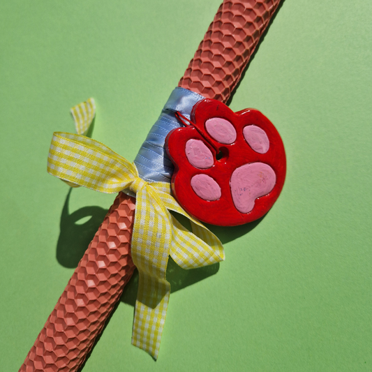 Πασχαλινή Λαμπάδα Χειροποίητη από Μελισσοκέρι Σομόν με Κεραμικό Στοιχείο Κόκκινη Πατούσα
