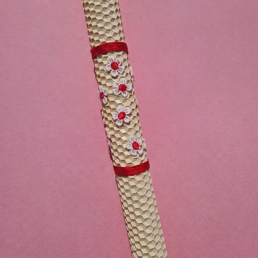 Πασχαλινή Λαμπάδα Χειροποίητη από Μελισσοκέρι Μπεζ με Λευκά Λουλουδάκια