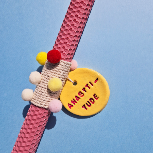 Πασχαλινή Λαμπάδα Χειροποίητη από Μελισσοκέρι Ροζ με Κεραμικό Κίτρινο Στοιχείο Anasttitude