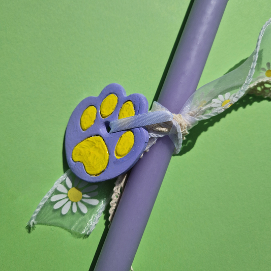 Πασχαλινή Λαμπάδα Χειροποίητη Αρωματική Λιλά με Κεραμικό Στοιχείο Λιλά Πατούσα
