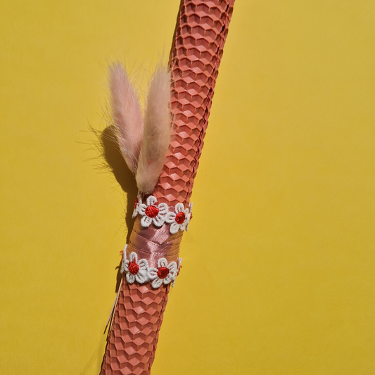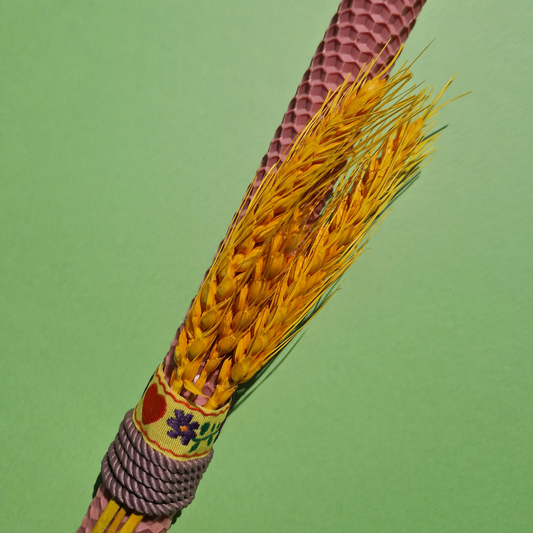 Πασχαλινή Λαμπάδα Χειροποίητη από Μελισσοκέρι Ροζ με Αποξηραμένο Στάχυ
