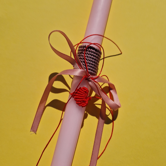 Πασχαλινή Λαμπάδα Χειροποίητη Αρωματική Ροζ με Μακραμέ Βραχιόλι Καρδιά