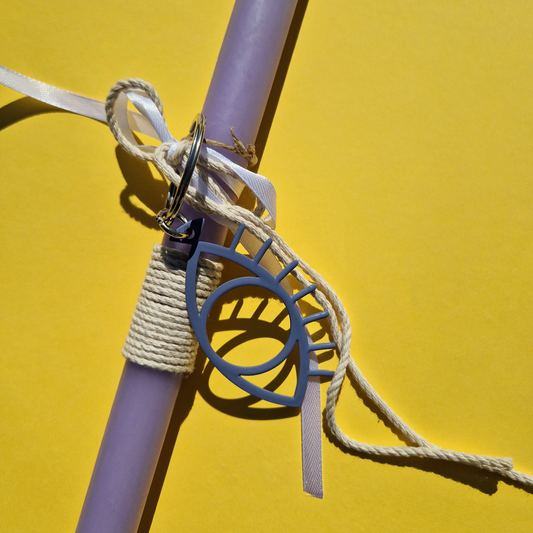 Πασχαλινή Λαμπάδα Χειροποίητη Αρωματική Λιλά με Μεταλλικό Μπρελόκ Fish Eye Limited Edition