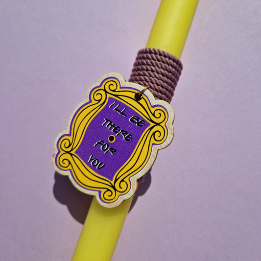 Πασχαλινή Λαμπάδα Χειροποίητη Αρωματική Κίτρινη με Ξύλινο Στοιχείο Friends Ι'll Be There For You (Τα Φιλαράκια)