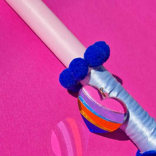 Πασχαλινή Λαμπάδα Χειροποίητη Αρωματική Ροζ με Πλέξι Ακρυλικό Στοιχείο Heart και Pom Pom