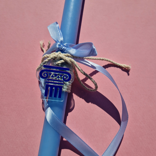 Πασχαλινή Λαμπάδα Χειροποίητη Αρωματική Γαλάζια με Πλέξι Ακρυλικό Στοιχείο Κίονας