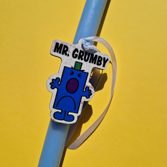 Πασχαλινή Λαμπάδα Χειροποίητη Αρωματική Γαλάζια με Ξύλινο Στοιχείο Mr Grumby