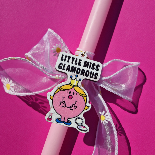 Πασχαλινή Λαμπάδα Χειροποίητη Αρωματική Ροζ με Ξύλινο Στοιχείο Little Miss Glamorous