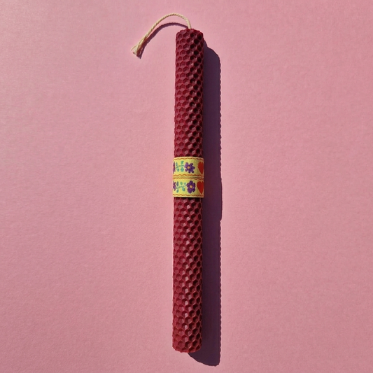Πασχαλινή Λαμπάδα Χειροποίητη από Μελισσοκέρι Λιλά με Πολύχρωμη Κορδέλα