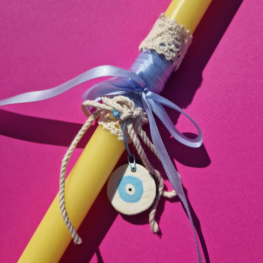 Πασχαλινή Λαμπάδα Χειροποίητη Αρωματική Κίτρινη με Ξύλινο Στοιχείο Blue Eye Limited Edition
