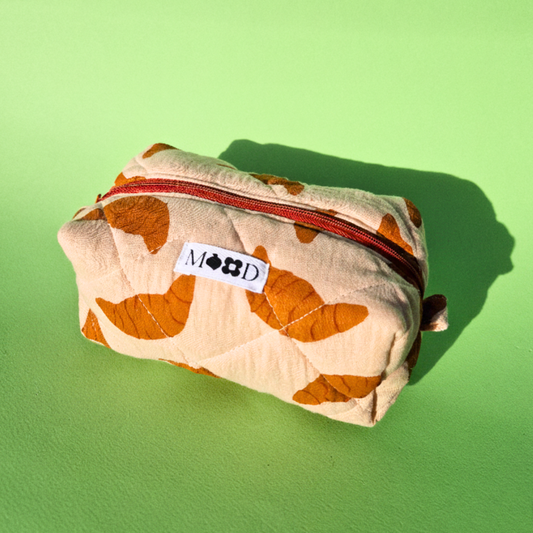 Χειροποίητο Καπιτονέ Κρεμ Νεσεσέρ Καλλυντικών Makeup Bag με Κρουασάν Croissant