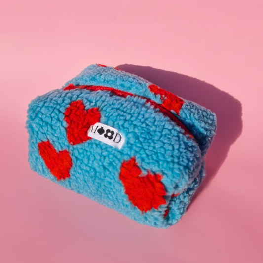 Χειροποίητο Καπιτονέ Πετρόλ Νεσεσέρ Καλλυντικών Makeup Bag με Κόκκινες Καρδιές Heart