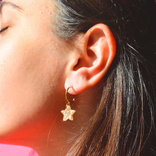 Χριστουγεννιάτικα Ατσάλινα Χρυσά Σκουλαρίκια με Πλέξι Αστέρι Star