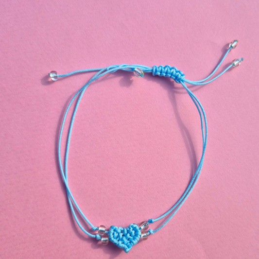 Χειροποίητο Μακραμέ Βραχιόλι με Γαλάζια Καρδιά και Χαντράκια