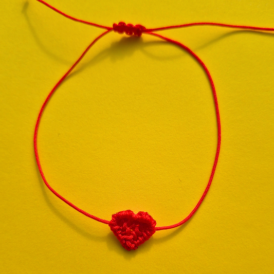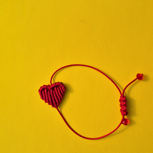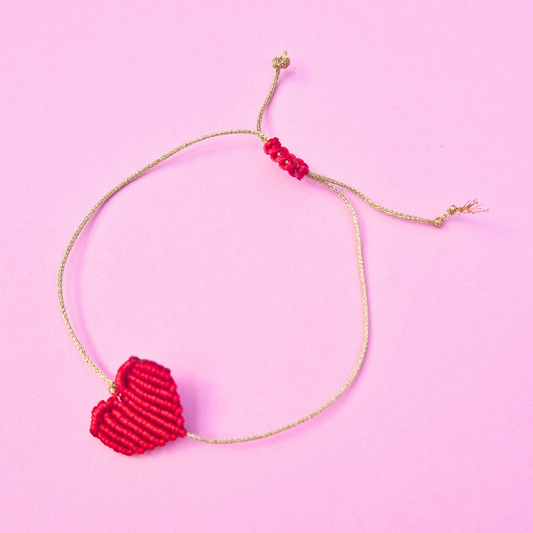 Κόκκινο Βραχιόλι Χειροποίητο Μακραμέ με Μικρή Κόκκινη Καρδιά