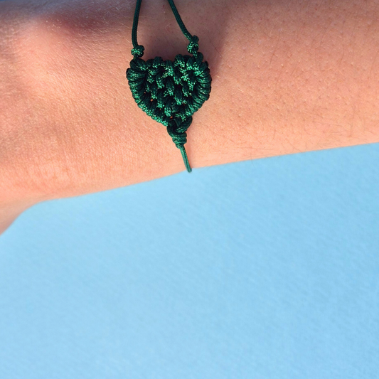 Χειροποίητο Μακραμέ Βραχιόλι Πράσινη Καρδιά