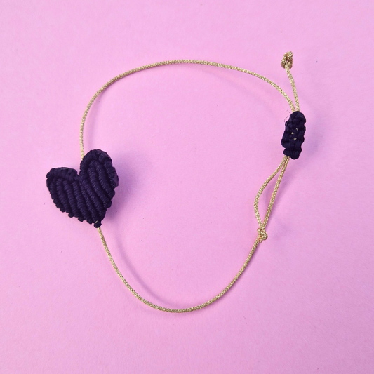 Χειροποίητο Μακραμέ Βραχιόλι με Διαγώνια Μαύρη Καρδιά και Χρυσή Κλωστή