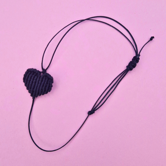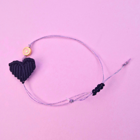 Χειροποίητο Μακραμέ Βραχιόλι με Μαύρη Καρδιά