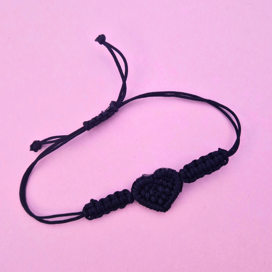 Χειροποίητο Μακραμέ Βραχιόλι με Μαύρη Καρδιά και Μαύρες Λεπτομέρειες
