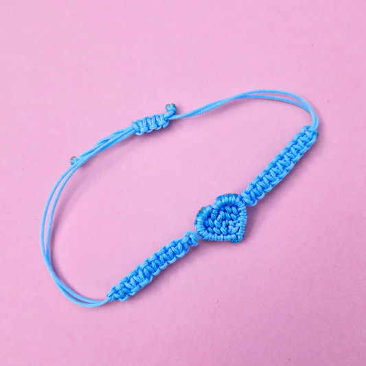 Χειροποίητο Μακραμέ Βραχιόλι με Γαλάζια Καρδιά και Γαλάζιες Λεπτομέρειες