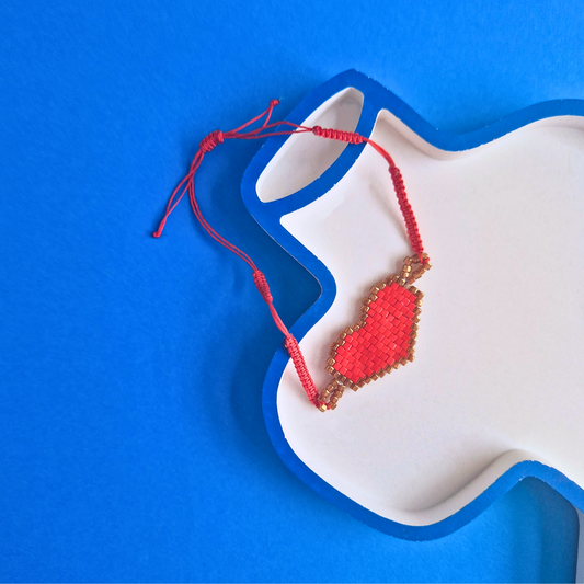 Χειροποίητο Βραχιόλι Κόκκινη Καρδιά από Χάντρες Miyuki με Κούμπωμα Μακραμέ